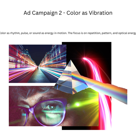 The Frequency Spectrum is a conceptual advertising campaign created for Christopher John Rogers, exploring the psychological and emotional power of color as a living frequency. Drawing from color theory and color psychology, the campaign reimagines how hues can communicate mood, identity, and rhythm - translating Rogers’ signature use of color into a visual language of light, movement, and emotion.
